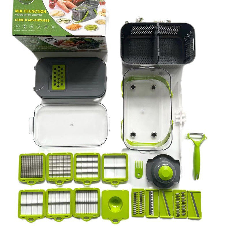 🟢 1 × Coupe-légumes Multifonction « 22 en 1 ».